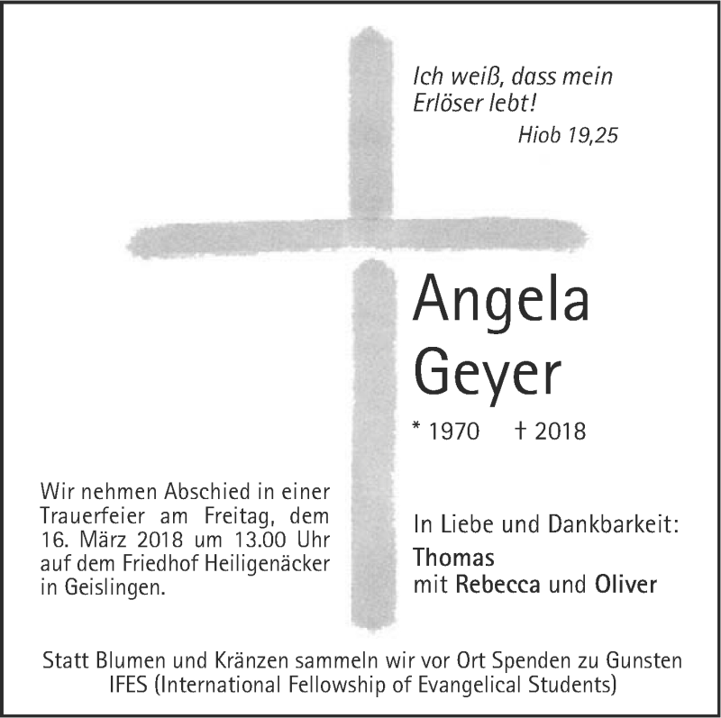 Hier finden Sie alle Traueranzeigen aus der Zeitung, die bisher für Angela Geyer erschienen sind. Weitere Traueranzeigen, die in der Zeitung erscheinen, werden hier ebenfalls aufgelistet