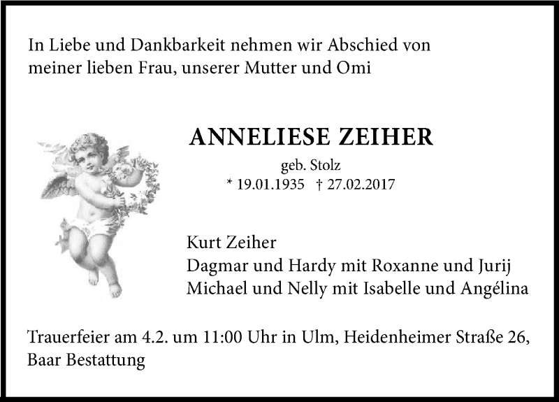 Hier finden Sie alle Traueranzeigen aus der Zeitung, die bisher für Anneliese Zeiher erschienen sind. Weitere Traueranzeigen, die in der Zeitung erscheinen, werden hier ebenfalls aufgelistet
