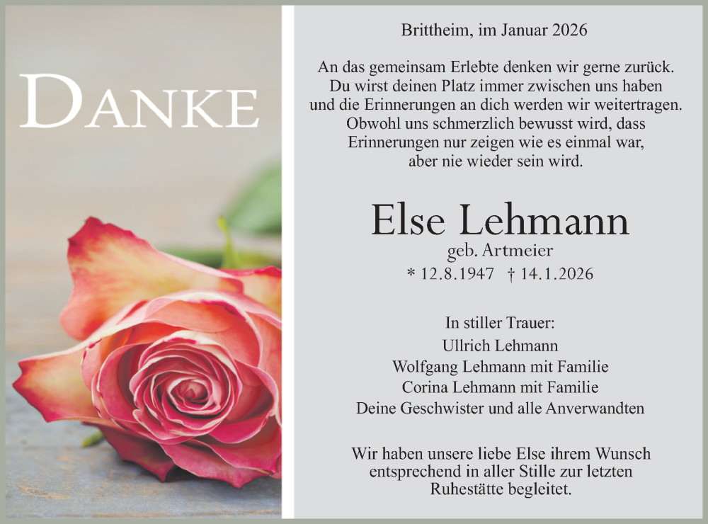 Hier finden Sie alle Traueranzeigen aus der Zeitung, die bisher für Else Lehmann erschienen sind. Weitere Traueranzeigen, die in der Zeitung erscheinen, werden hier ebenfalls aufgelistet