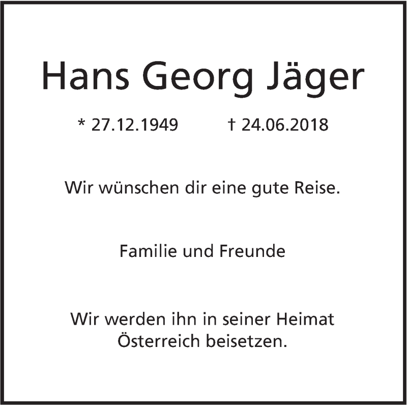 Hier finden Sie alle Traueranzeigen aus der Zeitung, die bisher für Hans Georg Jäger erschienen sind. Weitere Traueranzeigen, die in der Zeitung erscheinen, werden hier ebenfalls aufgelistet