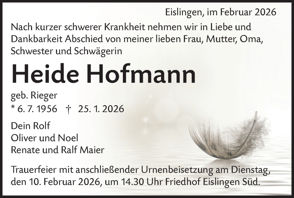 Hier finden Sie alle Traueranzeigen aus der Zeitung, die bisher für Heide Hofmann erschienen sind. Weitere Traueranzeigen, die in der Zeitung erscheinen, werden hier ebenfalls aufgelistet