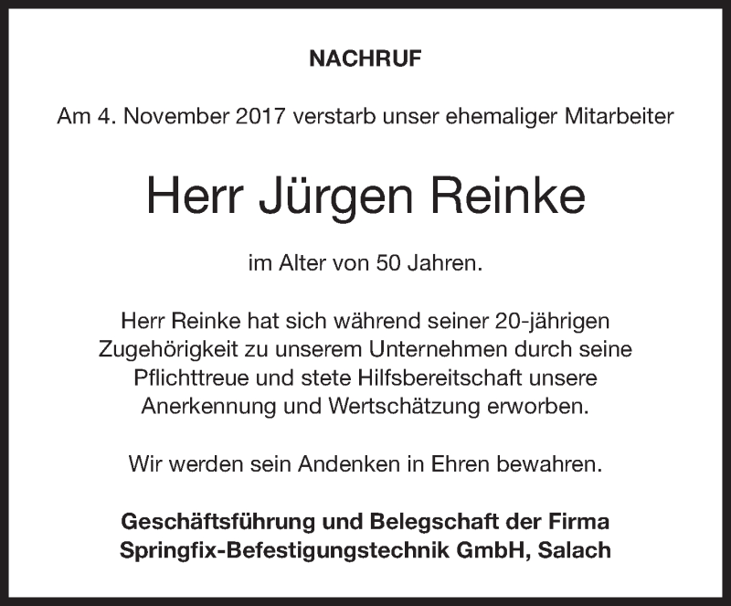 Hier finden Sie alle Traueranzeigen aus der Zeitung, die bisher für Jürgen Reinke erschienen sind. Weitere Traueranzeigen, die in der Zeitung erscheinen, werden hier ebenfalls aufgelistet