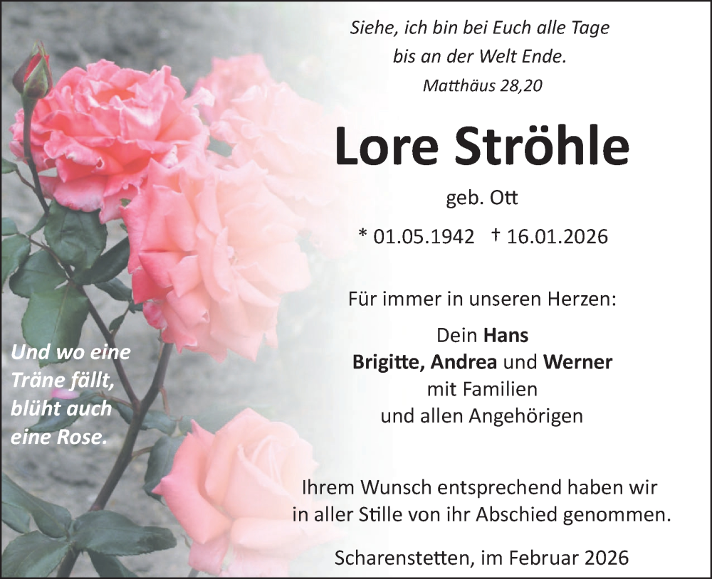 Hier finden Sie alle Traueranzeigen aus der Zeitung, die bisher für Lore Ströhle erschienen sind. Weitere Traueranzeigen, die in der Zeitung erscheinen, werden hier ebenfalls aufgelistet