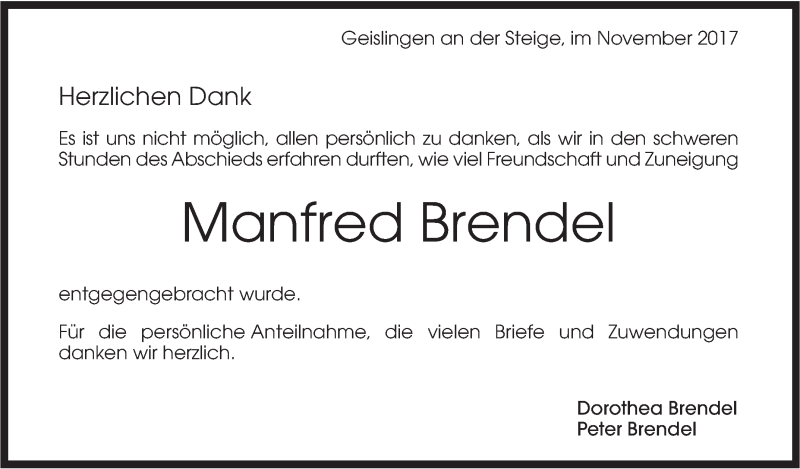 Hier finden Sie alle Traueranzeigen aus der Zeitung, die bisher für Manfred Brendel erschienen sind. Weitere Traueranzeigen, die in der Zeitung erscheinen, werden hier ebenfalls aufgelistet
