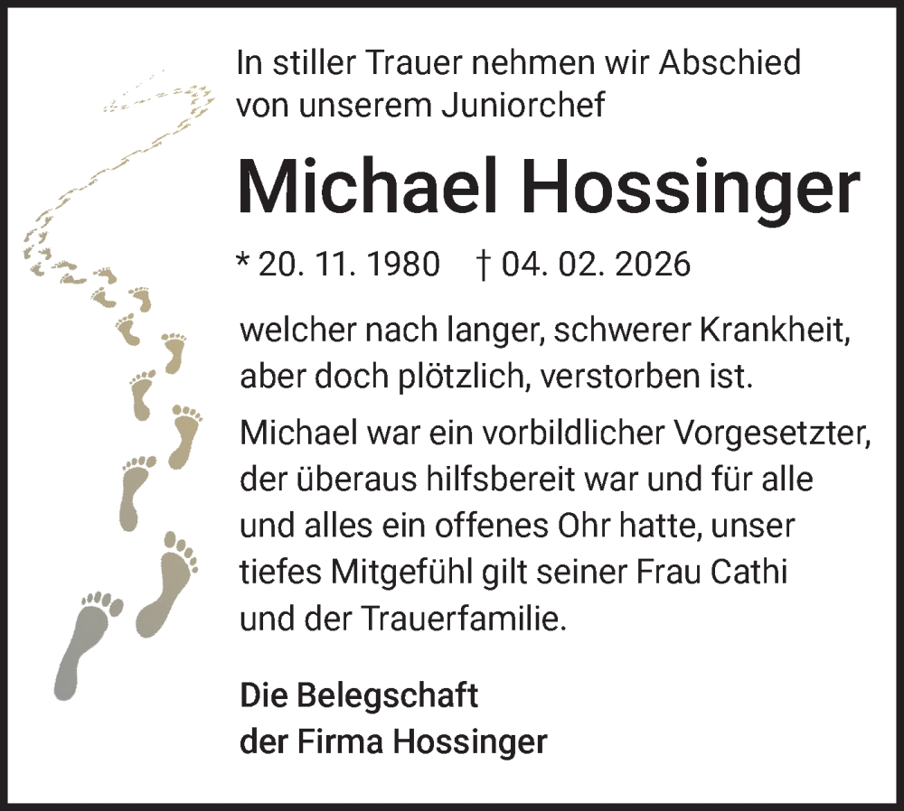 Hier finden Sie alle Traueranzeigen aus der Zeitung, die bisher für Michael Hossinger erschienen sind. Weitere Traueranzeigen, die in der Zeitung erscheinen, werden hier ebenfalls aufgelistet