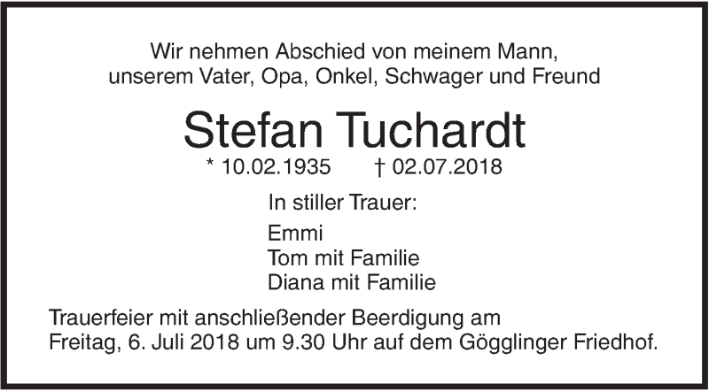 Hier finden Sie alle Traueranzeigen aus der Zeitung, die bisher für Stefan Tuchardt erschienen sind. Weitere Traueranzeigen, die in der Zeitung erscheinen, werden hier ebenfalls aufgelistet