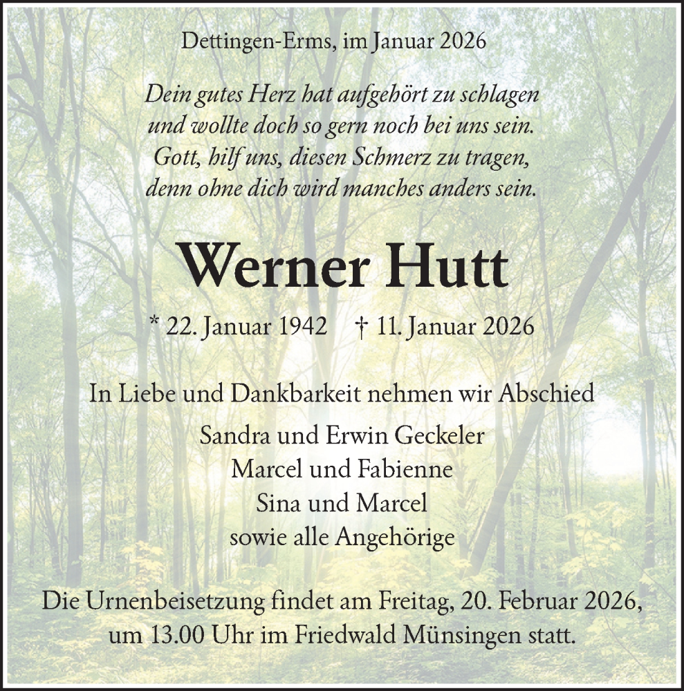 Hier finden Sie alle Traueranzeigen aus der Zeitung, die bisher für Werner Hutt erschienen sind. Weitere Traueranzeigen, die in der Zeitung erscheinen, werden hier ebenfalls aufgelistet
